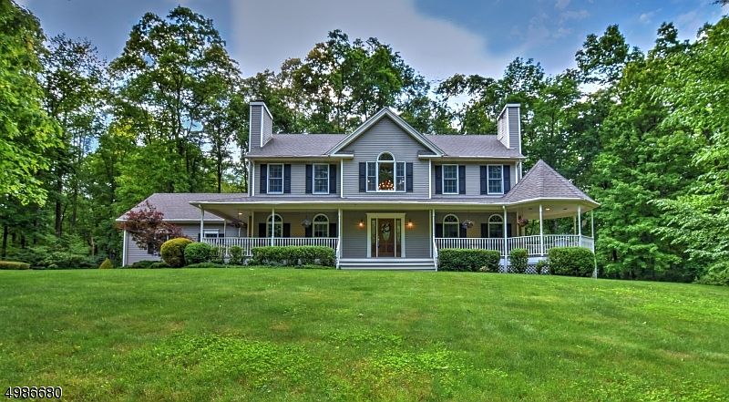 Privacy abounds on this equestrian property w/ a beautiful custom home on almost 6 AC. Enter this immaculate 3bd. 2.5bth home thru the peaceful rocking chair front porch complete w/ sitting area. Main level opens w/ grand 2 story entry,custom kitchen, brkfst area open to a lrg FR w/ WB FP, DR + LR w/ gas FP. Upstairs has 3 generous bds + full LR w/ sink. Large deck w/ a built in gas grill. Relax in the hot-tub or hammock & overlook the expansive sequestered backyard. Set back is a perfect ctr. aisle 2 stall custom red barn & pastures. The barn features, wtr + elec, heated office/feed/tack rm + hayloft. Backs to state land - easily access the horse/walking trails in Swartswood Park. Complete seclusion only 10 minutes to Shop Rite & Newton. Custom, privacy & high end amenities- exactly what ur looking for!