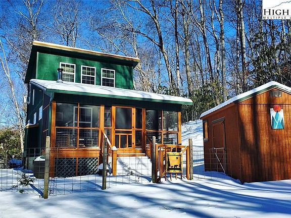 This cute turn key updated mountain cottage is waiting for you. Fully furnished with rental history for the last 3 years. Located just minutes from downtown Lansing and walking trails, trout streams, dog park, shops and restaurants. Lansing is becoming more popular as they continue to revive this small town. This beautifully decorated custom home, built in 2014, offers an open living area/kitchen, open stairway to the large loft bedroom with double barn door closets, custom-built Hickory Cabinets in the kitchen, upgraded appliances, first floor laundry and smaller additional sleeping area. The outdoor space this home offers was made to be enjoyed! There is a large covered screened in rocking chair porch in the front of the home to take in the views of the rolling mountains and an open deck in the back to take in the gorgeous flora and fawna including gardening areas, a variety of berry bushes and beautiful landscaping. There are 5 additional structures on the property, a gardening shed, a spring house/cellar, a workshop/barn, a large aluminum car/RV port, a barn with chicken coop and livestock pens, and a smaller chicken coop barn.