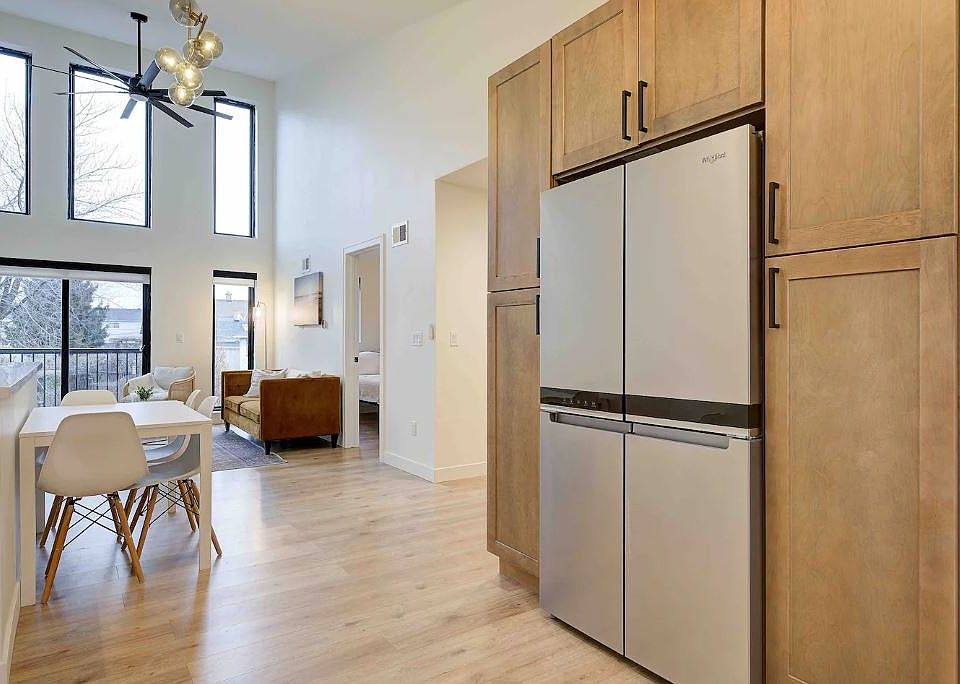 Dedicated one-car heated garageModern living spaceElegant quartz countertopsThree spacious bedroomsVaulted ceilingsCustom cabinetryStainless steel appliances