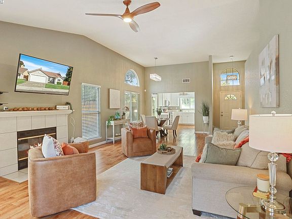 Welcome home to this charming 3-bedroom, 2-bathroom single-story residence nestled on a 7,037+ sq. ft. lot in the peaceful court setting of the highly desired Circle B Ranch neighborhood. Step inside onto the gorgeous LVP floors, soaring vaulted ceilings and an open floor plan that fills the home with space and light, and a fireplace for those cozy evenings. The primary bedroom offers a unique retreat, featuring a double sided wood-burning fireplace that beautifully connects to an oversized soaking tub, —the perfect ambiance for relaxing at the end of the day. The updated hall bathroom showcases a spacious walk-in shower and elegant modern finishes. Enjoy indoor-outdoor living through the French patio doors, opening to a serene backyard complete with a lush green lawn and mature shade trees—ideal for gatherings, play, or peaceful moments outdoors. Nearby shopping, park and eateries provide a lifestyle convenience. Come fall in love and make this house your next home.