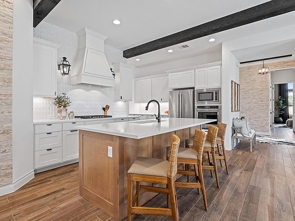 Welcome to a true lock-and-leave luxury garden home, a space designed for those who prefer effortless living without sacrificing privacy or style. This residence offers low-maintenance ease with tranquility and seclusion. Enter through the private gate into a courtyard that runs the length of the home, offering both privacy and a carefree lifestyle. The back half becomes your personal retreat, with an uncovered patio, astro turf, and a covered outdoor kitchen complete with cozy fireplace, gas lantern lighting, tongue-and-groove ceiling, and space for game-day gatherings or intimate evenings. Inside, elegance greets you with an iron front door and wooden beams adorning the ceiling and stone accents throughout. Flooded with natural light, the open layout exudes warmth and sophistication. The kitchen is a showpiece flanked by gas lanterns and a custom hood, with a full backsplash wall tying into the stone-clad dining area. Dimmable lighting throughout allows you to curate the perfect ambiance, whether winding down after travel, enjoying a quiet night, or entertaining. Additional thoughtful touches include a flexible office/media room and cohesive stone details throughout. The primary suite is a retreat of its own, with a frameless glass shower, soaking tub, and dimmable lighting that turns everyday routines into spa-like experiences. An expansive walk-in closet offers direct access to the laundry room, making functionality seamless. The secondary bedroom is equally impressive, boasting 12-foot ceilings, abundant light. Best of all, there’s nothing to do outside. No mowing. No maintenance. Just more time to enjoy the community fitness studio, curated activities, and nearby conveniences like H-E-B, Sprouts, CVS, and just 13 minutes to Georgetown Square. This villa is more than a home, it’s an invitation to live differently. To slow down, savor, and enjoy life’s best moments.