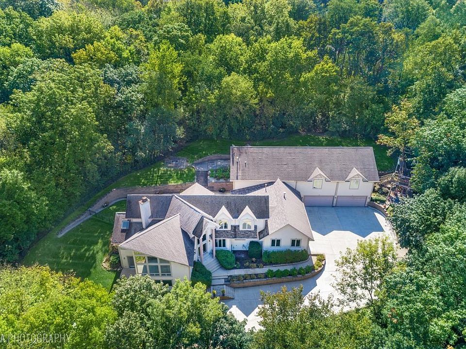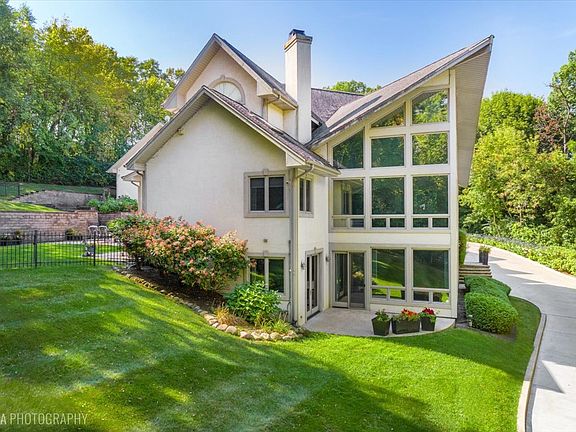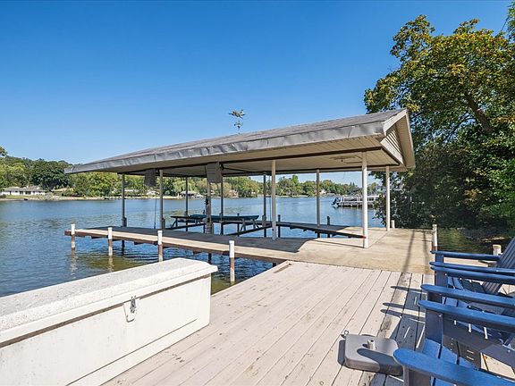 Year-round resort living & entertaining can be yours in this stunning 4 bed, 5.1 bath home with elevated lot on 1.67 acres, offering privacy, a gated entry, mature trees, 1.5 boat slips and seasonal views of the Fox River. This extraordinary property offers an unmatched blend of luxury, recreation, functionality and limitless possibilities to enjoy for years to come! With three levels of living space, the residence boasts 6800 SF above grade and an additional 2163 SF in the walk-out lower level, totaling almost 9000 SF. For the hobbyist or collector there is garage space for up to 12 cars and your own boat storage which includes a 4-car primary garage, a 4-car tandem garage (8 spaces), plus a workshop and 28 x 26 storage/exercise room. The 2200 SF above the secondary garages includes a 64 x 34 Bonus Room has in-line skating flooring and a golf simulator. There is also a large office for WFH and a full bathroom. Step inside to the open concept interior and take in the natural light and soaring volume ceilings. The grand two-story entry with a dual staircase which leads you into the dramatic Great Room with walls of glass, a large fireplace and adjacent wet-bar. The heart of the home is a beautifully appointed kitchen featuring 42" cabinets, granite counters, high-end stainless appliances and a walk-in pantry. The adjacent dining room is perfect for hosting unforgettable dinners and gatherings, while the sunroom is the perfect spot to enjoy your morning coffee or casual evenings grilling out. The tiered concrete patios offer great outdoor space including a built-in fire pit. A mudroom & separate laundry room complete the main level. The spacious primary suite is a private sanctuary, featuring a spa-inspired bathroom with whirlpool tub, walk-in shower, double vanity and excellent closet space. A second ensuite bedroom on the main level is ideal for family or guests while the upper level includes two spacious bedrooms with vaulted ceilings, a tandem bedroom/loft (currently set up as a nursery) and a full bathroom. The lower level was designed for ultimate entertainment and is fun and versatile, with plush seating arranged around a large flat-screen TV, perfect for game nights or movie marathons. A centerpiece of the lower level is a custom cherry wood bar featuring all the essentials. The game room beckons...the pool table is included and there is extra space for a game table and seating. Radiant heat flooring is an excellent add-on feature to enjoy this fun space. At the river there is a total of 85 feet of frontage with concrete docks and decking. The full pier is shared 50/50 with neighbors providing 1.5 boat slips per residence and shared decking. Your portion will include 1 full covered boat slip with an electric lift and room for a wave runner too. The home located on a small shared lane just minutes from downtown Algonquin's shops, restaurants, and small-town charm, and with easy boat access to Port Edwards, The Broken Oar, Kief's Reef, and the Chain of Lakes, this is more than just a home-it's a lifestyle. Bring your boat and embrace the river life today!