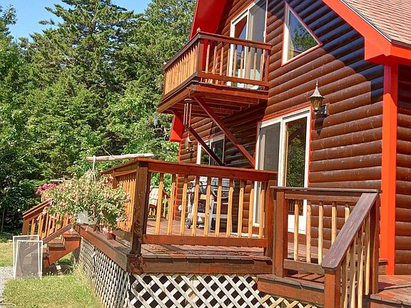 Privately situated home only minutes to Bar Harbor and Acadia National Park. This solid built log sided home is in turn key condition. Its south facing views overlook a farm pond full of Maine wildlife. Plenty of sunlight and solar gain make this home very affordable to heat. Its open concept living arrangement and vaulted ceilings give it a spacious feel. The two car garage has huge storage space above that could be finished off for a bonus room. This lot is truly a nature lovers dream.