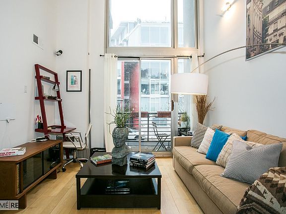 This airy, south-facing one-bedroom apartment features dramatic 18' high ceilings, a balcony off the living room, central HVAC, W/D, Caesarstone countertop, hardwood floors, floor-to-ceiling windows, custom-European kitchens, Bosch and Fisher Paykel appliances, vented cooking hood, washer-dryer hookups with external vent, tankless dual flush Duravit toilet, and a deep soaking tub with rainfall shower. 925 Pacific Street ("Hello Madison") is one of six boutique elevator buildings in the exclusive Hello community where residents have access to an indoor pool, sauna, fitness center, children's playroom, lounge with billiards, ping pong, and poker tables, bar area, screening room, business center with projector and WiFi, and common roof deck with spectacular Manhattan views. Located in Prospect Heights bordering Crown Heights, Clinton Hill, Park Slope, and Fort Greene, you can enjoy the convenience of living near top-rated restaurants, cafes, retail, groceries, Prospect Park, the Brooklyn Museum, Brooklyn Zoo, Botanic Gardens, and Barclays Center. The C train is just 1.5 blocks away for a 15 minute commute to Manhattan and the 2, 3, 4, 5, B, Q, G and Atlantic Terminal are a few avenues away. With low common charges, a tax abatement until 2033, and potential to expand the space with a free-standing loft, you can have your dream home without breaking the wallet.