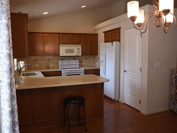 Private, end of the culdesac location! This 2006 built ,zero step entry Rancher features two bedrooms and 2 baths, vaulted ceilings, wood floors, gas fireplace, covered front and back patios, French patio doors, fenced backyard, mature landscaping, sprinkler system, gas furnace, gas hot water, and central air. The large U-shaped kitchen has an eating bar and corian countertops. all appliances stay. Main bedroom has a private 3/4 bath and large walk in closet. This is a great Valley location.