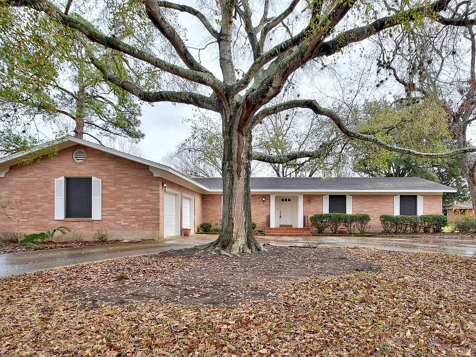 This beautiful mid-century brick home sits on an extra large lot, conveniently located within 3 mins of HEB/downtown Luling and just 45 mins from both Austin and San Antonio. A wrap around driveway and large trees give this home tons of character upon entry. Original details and two covered patios add charm throughout the home as well. Updated include PVC plumbing, freshly painted exterior, newer AC and hot water heater, and new blown-in insulation. Ask about special financing!
