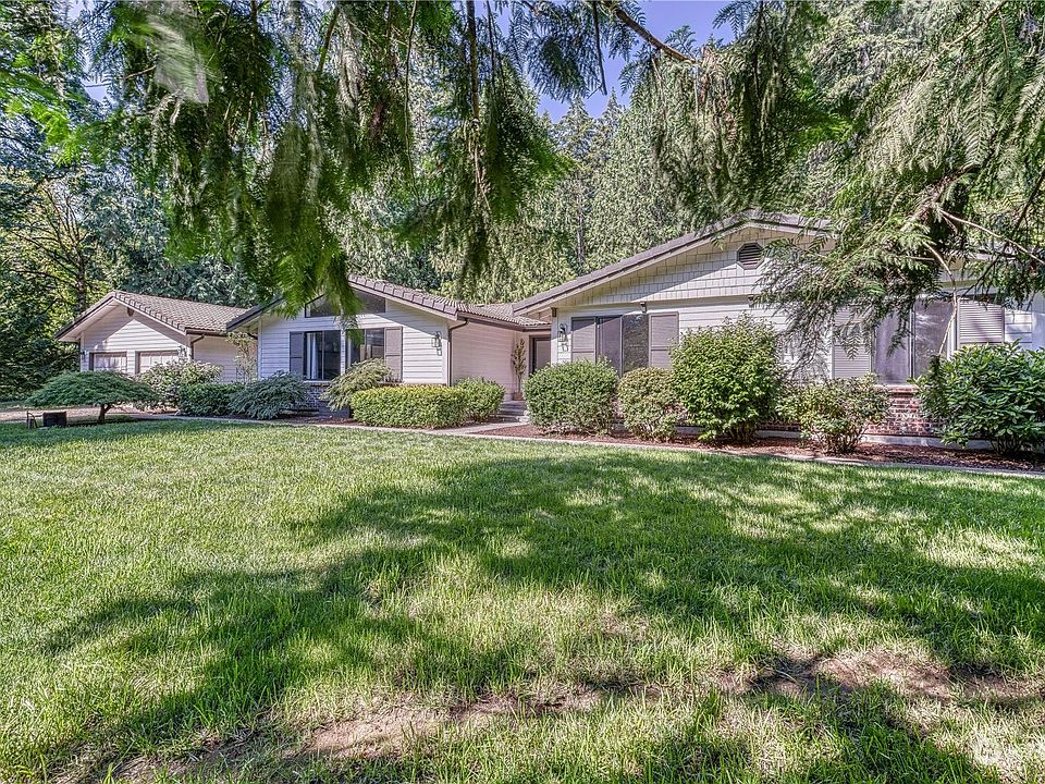 Beautiful Custom Rambler with 3 Bedrooms, 2 bath with 2128 Sq. Ft. located on 2.5 acres. Open and Bright living room with vaulted ceilings and new carpet , wood fireplace and dining room. Large Primary bedroom attached ,new free standing spa tub, walk-in shower, beautiful vanity and walk-in closet. 2nd bedroom opens into updated full bath that also opens in hallway next to 3rd bedroom . Large kitchen with eating area , Stainless appliances ,large walk-in pantry, family room and work station. Sliding doors in Family room opens to beautiful deck, perfect for BBQ's and entertaining. New insulation in attic Oversized 2 car garage and work area. Separate 28x32 shop with 2 separate garage doors, one 12 ft x12 ft door the other 9 ft x8 ft