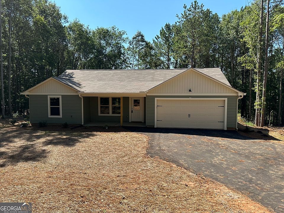 Brand new home near town on 1.3 acre lot with no HOA, ready for move-in. Home features granite countertops throughout, undermount sinks, master suite with walk-in closet, spacious 2 car garage, and front/rear porches. Kitchen has stainless appliances, pull-down sink sprayer, island with bar seating, and pendant lights above the island. Paved driveway and turnaround are set back from the road and are partially concealed by a row of trees. LVP flooring throughout. Back yard extends to and beyond tree line into field, offering chances to enjoy a variety of outdoor activities. Lot features both wooded and open areas in the back. Home is less than a 5 minute drive from restaurants, SR 365, and Chattahoochee River access. Owner/agent.