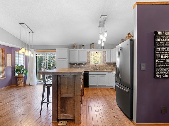 Welcome to this exquisite home nestled in a serene cul-de-sac location, offering the perfect blend of elegance and comfort. With a plethora of desirable features, this property is a true gem. As you step inside, be captivated by the stunning hickory wood floors that grace the main floor living space. The wood-burning fireplace with a convenient gas starter invites you to cozy up on cool evenings, creating a warm and inviting ambiance. The kitchen is a chef's dream with white cabinets, granite countertops, and a custom-made barn wood island that adds rustic charm and functionality. A spacious pantry provides ample storage space, making meal preparation a breeze. All kitchen appliances stay with the home. Sunlight pours in through the dining room's bay windows, offering a picturesque view of the lush surroundings. This space is perfect for hosting intimate dinners or large gatherings. Retreat to the primary suite, complete with not one, but two closets – including a walk-in closet. The primary bath boasts double sinks and a stand-alone shower, ensuring your personal oasis is both stylish and functional. A finished view-out basement adds extra living space, with a family room and two additional bedrooms. The third full bath and a dedicated laundry room offer convenience for the entire family. Step outside to the backyard and discover a peaceful retreat. A deck provides a perfect spot for outdoor entertaining, while five raised garden beds await your green thumb. A wood privacy fence ensures your outdoor space is your own private paradise. A sprinkler system, irrigation well, and fire pit complete the outdoor amenities. Additional features of this home include a water softener and battery backup sump pump for peace of mind. Newer windows and siding enhance the property's overall appeal and energy efficiency. Washer, Dryer and Freezer all stay. Also staying are Custom Kitchen Island, Kitchen Bar Stools and TV mounts. With the added bonus of Goddard Eisenhower Schools, this home is a must-see. Schedule your showing today to experience the perfect combination of natural beauty and modern living. Your dream home awaits!