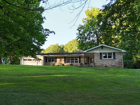 Location, Location, Location! This home sits outside of city limits but still close to town. Settled on a large corner lot, this home boasts 2 living rooms with a shared wood burning fireplace, an attached 2 car garage, formal dining room as well as an eat-in kitchen area. Master bedroom has an attached bathroom plus there are 3 more bedrooms with another full bathroom. The kitchen comes with all the appliances as well as the laundry room furnished with a washer & dryer plus a half bath. Hardwood floors in both living rooms plus sliding patio doors to walk outside. You won't want to miss out on this large ranch style home.