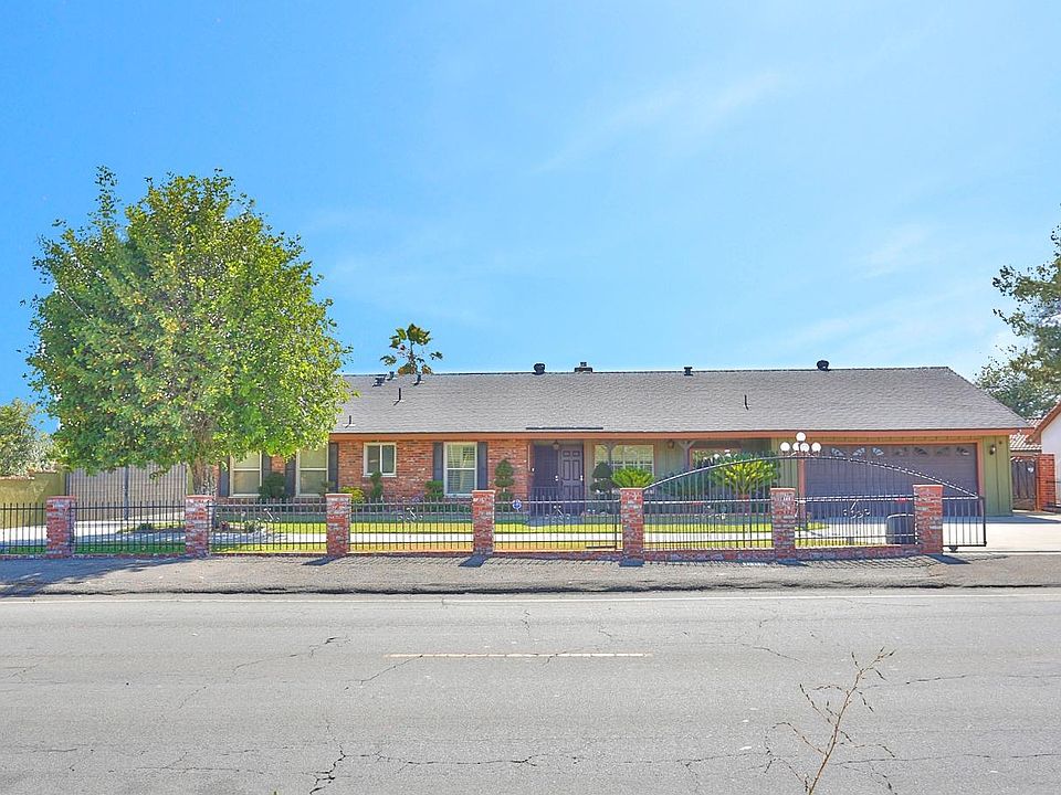 Want something special? How about a POOL HOME, single level with wrought iron gates, block wallfencing, stunning landscaping, RV parking and a large 12,000+/- Sq. Ft. lot! As you enter you'll see the pride of ownership & MANY UPGRADES. I love the tall vaulted ceiling with exposed wood, double-sided brick fireplace, upgraded wood-style floors, tall baseboard, 2 tone paint & massive bonus room with crown molding! Check out the kitchen with granite counters, stainless steel appliances, new cabinets, new lighting, custom backsplash, new sink, tile floors...this is a great space to prepare delicious meals. Crown molding throughout, the master bathroom was remodeled with glass tile shower, granite counter, tile floors...there are too many upgrades to list. Large covered patio, POOL, SPA and so much more!