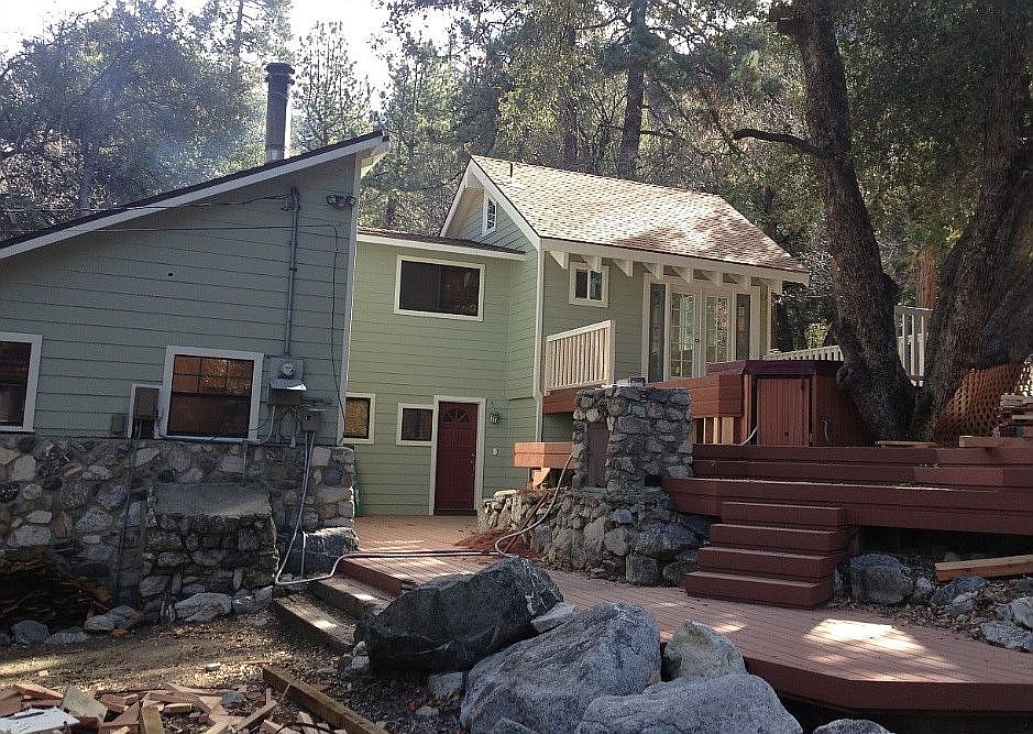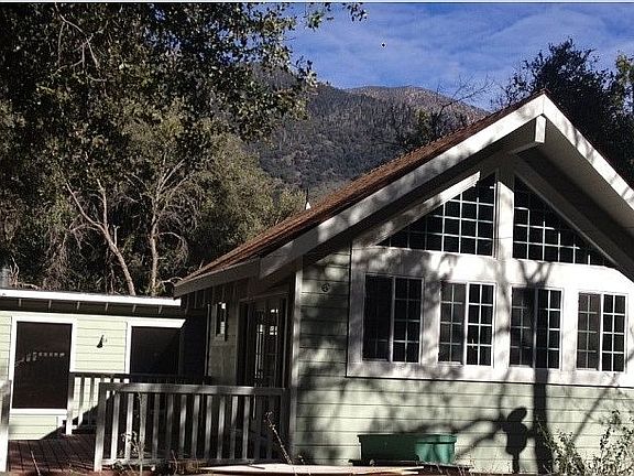 An amazing mountain retreat to enjoy the peaceful serenity of the outdoors with delightful songs of exotic birds, crisp clean mountain air, ancient oak trees, deep blue heavenly skies, and rugged majestic mountains. This recently renovated home brings the comfort of city life into the tranquility of nature. You're welcomed home with a beautifully adorned circular driveway and two car garage/carport. Steps lead up to the courtyard with a three-level custom redwood and Trex deck with built in hot tub. This deck is warm and relaxing and provides marvelous views. Bordering the deck is a separate structure that can be used as a storage for firewood, a workshop, or could be enclosed to use as a clubhouse or prayer room. It offers a private and comfortable atmosphere with a grand view of a gentle sloping canyon of lush vegetation. The home has an open living room with high ceilings, a warm wood burning stove, and large windows that showcase the steep mountain peaks. It expands into the cozy kitchen with butcher block counter tops and an adorable octagon window. Next to the kitchen is a small bedroom with beautiful panoramic windows that provide a front row seat to nature where you can watch the peaceful fall of snow, the birds making their nests in trees, or the wildlife meandering down from the mountains. Down the hallway is a nice spacious bathroom with shower and washer and dryer. Further down the hall is a large sunken bedroom with a row of custom windows from a B-52 bomber that gives the secure feeling of being in a fortress. The room has a large closet and access to the backyard. Upstairs has a spacious loft area (4th bedroom?) and closet with a window overlooking the courtyard area. Then the large recently added master bedroom suite with beautiful steep vaulted hardwood ceilings, expansive windows, an ensuite master bathroom, and French doors leading to the courtyard deck and step-in hot tub. This is truly a paradise getaway.