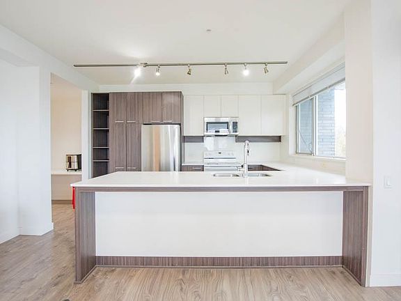 Bright se corner unitOpen-concept kitchenStainless steel appliancesLarge quartz countertopDouble-sink ensuitePrivate balcony