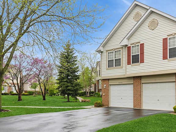 Welcome to one of the most exceptional homes in Burnside Station. This move-in-ready townhouse offers the perfect blend of style, space, and convenience. Flooded with natural light, the home features a lower-level walkout and sophisticated finishes throughout, including vaulted ceilings, cherry hardwood floors, and white trim. The open-concept main level provides multiple living areas, including a sitting room, living room, and dining area, all anchored by a stunning kitchen with granite countertops, custom cabinetry, marble backsplash, and stainless steel appliances. Two spacious bedrooms and two full bathrooms are also on the main level, including a serene primary suite with a walk-in closet. The finished lower level expands the living space even further with a cozy family room featuring a fireplace and herringbone porcelain tile flooring, plus an additional bedroom, full bath, and laundry room. Step outside to enjoy the private deck and patio overlooking tranquil green space-perfect for relaxing or entertaining. An oversized 2.5-car garage offers ample storage, and the unbeatable location is just minutes from Metra, highways, dining, and much more!