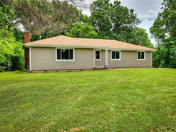 Here’s a great opportunity to have the home of your dreams without the high cost of building a new home. This house could be a Showstopper with an interior rehab with 2,544 sq feet of living space (1,776 sq ft on main floor and 768 sq ft in basement). The Virtual Staged photos are provided to help visualize that this home can be good as new. The large living room has vaulted ceilings, fireplace, & wood beams. The kitchen has a great layout that provides a large amount of cabinet/countertop space and pantry. There is a formal dining room & an eat in kitchen. The laundry room is located on the main floor. The master bedroom is 14x13’, has two large closets and master bath. The exterior has been updated with BRAND NEW Vinyl Siding, new Vinyl Windows, new Gutters & new Garage Doors. The 50x60 outbuilding is in need of a new roof but has a concrete floor & electricity. There is so much potential to create your own Oasis on this 63.25 acre property. The property is zoned for Agriculture use, so taxes are only $1,457 per year. An ADDED VALUE to this property is the 1,900 feet of road frontage for additional building spots or the land could be divided into 10 acres lots. There are some beautiful spots for building sites with fantastic views. Horses, chickens, cows, and other livestock are allowed. There are many possibilities including, hunting, fishing in the stocked pond, shooting range, homesteading, gardening, fruit tree orchard. Potential for Airbnb cabins or hunting lodge. The land is approximately 2/3 timber and 1/3 pasture. The hay crop yields an average of 37 bales per cut. There is quite a bit of fencing on the property. 10 minutes to Missouri Conservation Cooley Lake where there is a public boat access to the Missouri River. Located 12 Miles to Excelsior springs, 12 miles to Richmond, 20 miles to Liberty, 34 miles to Downtown KC. Selling the house and land “As Is”. Buyer to verify measurements, zoning and land use regulations. Cross posted under Land MLS 2402215.