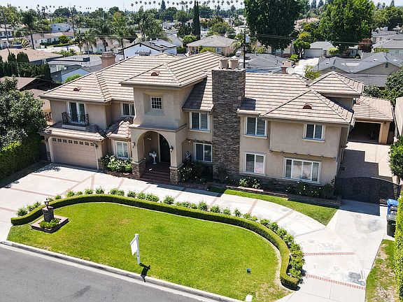 This spectacular 5-bedroom, 4.5-bathroom custom homewith a separate cabana and full bathoffers luxurious living in one of Downey's most desirable and peaceful neighborhoods. Conveniently located near major freeways, it provides easy access for commuting, while still maintaining a quiet residential atmosphere.From the striking curb appeal with a circular driveway and wrought iron double entry doors, to the beautifully designed interior, this home is built for comfort and entertaining. The first floor features a grand foyer with high ceilings, a formal living room with granite fireplace, formal dining room, a chef's kitchen with stainless steel appliances and granite counters, a step-down family room, guest bedroom, and home office.The second floor boasts a luxurious master suite with marble fireplace, two walk-in closets, spa-like bath with jacuzzi, bidet, dual sinks, and a private balcony. A junior suite with its own balcony and large bath, plus two additional bedrooms with an updated shared bath, complete the upstairs.Step outside to enjoy a fully renovated saltwater pool, spacious cabana with bathroom, brick paver patio, gazebo, and custom lighting. With a long gated driveway perfect for RV or boat parking, a 2-car attached garage, and detached 3rd garage, there's no shortage of space.