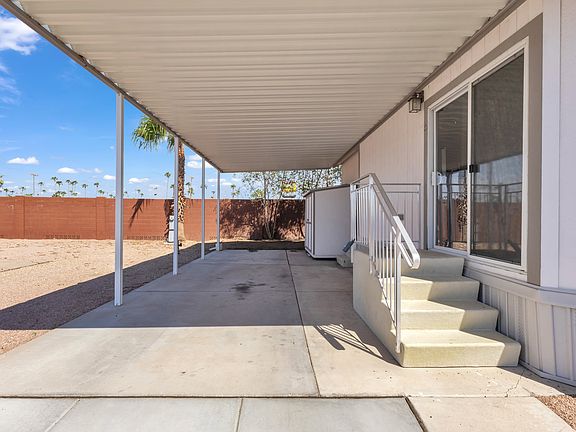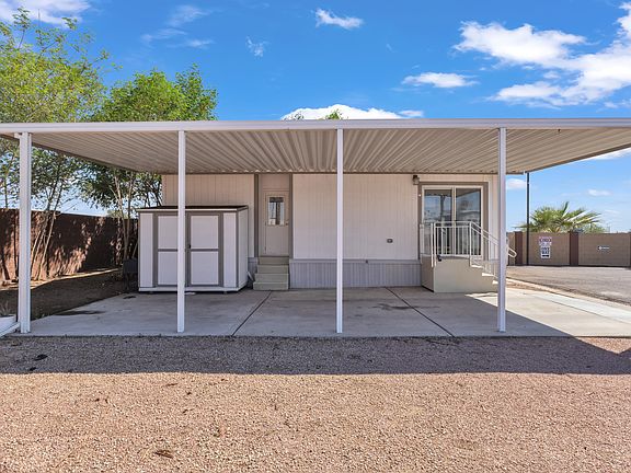 Welcome to this remodeled 1BR/1BA park model in the all-ages, gated Mesa Sunset RV Resort. Featuring new flooring and a brand-new refrigerator, this home blends comfort and modern convenience. The spacious U-shaped kitchen offers abundant counter space, while vaulted ceilings and large windows brighten the open-concept living area. The bath includes a step-in shower, updated vanity, and linen storage. A private bedroom with built-ins, covered carport, and shed with washer/dryer hookups add functionality. Located on a desirable corner lot, you'll enjoy resort-style amenities: heated pool, clubhouse, firepits, pickleball, fitness center, game room, laundry, and small dog park. Close to shopping, dining, and freeway access, this move-in-ready home won't last!