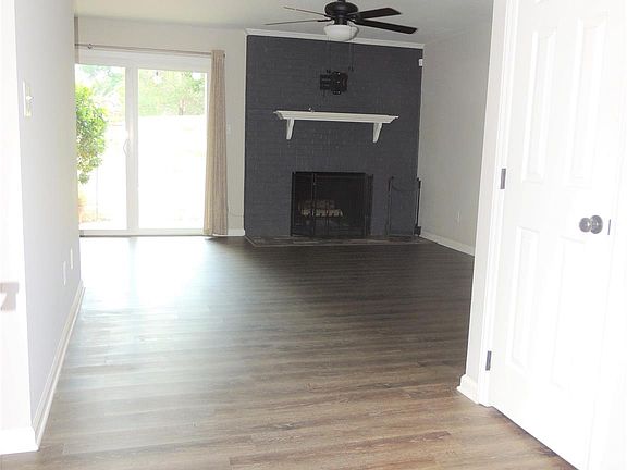 Wood burning fireplaceRear patioGranite countertopsVinyl plank flooringMarble countertop vanitiesExtra storage