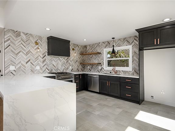 Beautiful Mid Century Modern Custom Home built in 1953. Home sits on a large 11,700 square foot flat lot with fruit trees and tons of potential.  Home is a 4 bedroom, 2 bath, plus bonus 5th room behind a large 2 car detached garage, which can be used as a home gym, home office, mancave, lounge, ADU, home theater or studio.  As you walk in this gorgeous home you will be greeted by the great room with vaulted ceilings, sliding doors leading to the patio and backyard, brick fireplace, ample natural light, and designer kitchen.  The kitchen features a full height tile backsplash, quartz countertops with waterfall feature on peninsula, stainless 6 burner stove and dishwasher.  The primary bedroom features a ¾ bath, walk-in-cedar-lined closet, and built in cabinets.  The 3 other bedrooms are well sized and have tons of natural light from the large windows.  Home has been completely remodeled including but not limited to floors, interior doors, baseboards, windows, interior / exterior paint, kitchen, bathrooms, fixtures, landscape and irrigation.  All the electrical wiring has been updated.  Most of the plumbing in the home has been updated to PEX.  Total square footage includes the room behind the garage which is approximately 241 square feet.  The set of homes on this portion of Russell Street are rare in that they are custom homes on large lots.  Backyard has a ton of potential; from adding a ground up ADU, pool, a pool house, large garden, to expanding the garage… Garage vertical space may be able to accommodate two car lifts as well.  The list goes on….The roof is a low sloped roof with foam insulation and elastomeric coating for uv protection and reduced energy cost.  The original owner of this home was a local well known architect who designed this home and designed the now Pancake House on Whittier Blvd.  Nestled in La Habra, CA, Orange County - border line between Los Angeles and Orange County makes it a great central location.