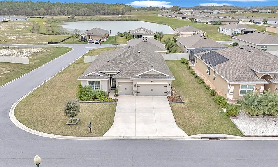 ALL YOUR HEART DESIRES IN GATED 55+ COMMUNITY! THIS IMPRESSIVE LENNAR BUILD WITH TRUE 3 CAR GARAGE. CHARMING CURB APPEAL ON CORNER LOT WITH MANICURED LANDSCAPING! BE SWEPT OFF YOUR FEET FROM THE MOMENT YOU ENTER INTO YOUR NEW HOME. WALK UNDER THE COVERED ENTRANCE THROUGH THE PALLADIUM GLASS DOOR TO YOUR FOYER WITH 2018 LUXURY VINYL PLANK FLOORING. TO THE LEFT IS THE FIRST OF 4 BEDROOMS. THIS PRIVATE BEDROOM FEATURES EN SUITE BATH WITH 42 INCH QUARTZ TOP VANITY AND TILE SURROUND TUB/SHOWER COMBO. JUST OUTSIDE OF THIS AREA IS THE GORGEOUS OPEN FLOOR PLAN WITH LARGE DINING ROOM PERFECT FOR ANY GATHERING, THE KITCHEN IS THE FOCAL POINT OF THIS HOME, THIS KITCHEN IS MASSIVE AND HAS SO MUCH TO OFFER WITH QUARTZ COUNTERTOPS AND CABINETS FOR DAYS...THERE IS A LARGE PENINSULA BAR WITH SPACE FOR 8 BAR STOOLS EASILY NOT TO MENTION THE SECOND ISLAND WITH SEATING FOR 2 AND PENDANT LIGHTING! GUNMETAL APPLIANCES, REVERSE OSMOSIS WATER SYSTEM FOR PRISTINE WATER AND COFFEE BAR. THE KITCHEN ALSO HAS A SPACIOUS 2ND DINING /BREAKFAST AREA. THE KITCHEN OVERLOOKS THE LIVING ROOM ALLOWING THIS AREA TO TRULY BE THE CENTER OF THE HOME ALLOWING ENTERTAINING TO BE A BREEZE. THE LIVING ROOM IS HOME TO THE TRIPLE SLIDING DOOR THAT LEADS TO COVERED 12 X 20 LANAI. THERE ARE 2 ADDITIONAL BEDROOMS TO LEFT OF LIVING ROOM THAT SHARE THE 3RD BATHROOM WITH 42 INCH QUARTZ COUNTERTOPS AND SURROUND TILE TUB/SHOWER COMBO. FOR THE ULTIMATE PRIVACY THE PRIMARY BEDROOM IS RIGHT HAND SIDE REAR OF THE HOME FOR THE PERFECT PRIVATE RETREAT. THE PRIMARY BATH BOASTS EXTRA LONG QUARTZ COUNTERTOP 42 INCH VANITY, A TILE SURROUND OVERSIZED SUPER SHOWER PERFECTLY DESIGNED AS A WALK IN AND LARGE GARDEN TUB. THE COMMODE AREA IS PRIVATE AS WELL. THE BACKYARD IS PRIVATE WITH TALL SHRUBS AND 6 FOOT FENCE DIVIDING THE NEIGHBORS TO THE REAR OF HOME. JUST OFF THE KITCHEN YOU WILL FIND THE INDOOR LAUNDRY ROOM WITH EXTRA SHELVING FOR STORAGE. THIS AREA LEADS TO YOUR TRUE 3 CAR GARAGE WITH PAINTED FLOOR AND IRRIGATION SYSTEM. 2015 WATER SOFTENER, 2015 DECHLORINATOR, RAIN GUTTERS ON FRONT OF HOME. 2018 HOT WATER HEATER, 2018 A/C WITH 2023 UV LIGHT ADDED, 2018 ROOF.HOA IS A LOW $145 PER MONTH WITH 2019 COMMUNITY AMENITIES AND 3 GATED ENTRANCES. BRAND NEW PUBLIX ACROSS THE STREET AND CLOSE TO ALL OF WHAT BEAUTIFUL OCALA FL HAS TO OFFER!!