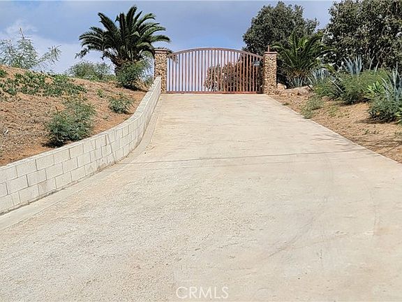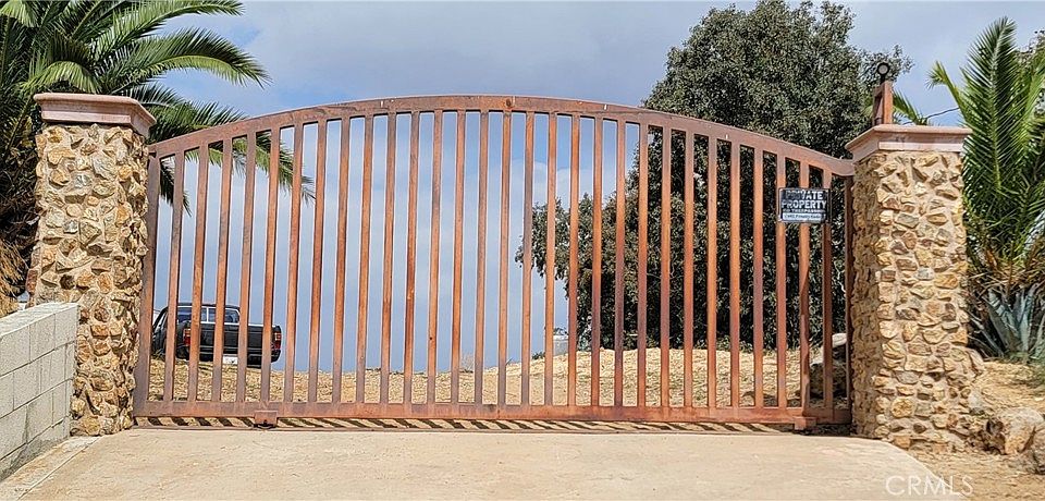 This 2.42 Acre lot has two separate entrances, adorned with stone pillars and custom iron gates. A water meter is connected to the property and an electric utility pole is on the property. This hilltop lot offers breathtaking views of Jurupa Valley, Mt. Baldy, Mt. San Jacinto, and Big Bear. The upper area of the lot boasts mostly flat terrain, making it the ideal location to build your dream home. In addition, thoughtful grading has been done to ensure easy access to lower levels, where you'll find a spacious 17' x 90' shelter (approximately). This property is zoned for horses with ample space for stables, riding arena, and pastures. Whether you seek a private sanctuary to call home or an investment opportunity in a highly desirable location, this 2.42-acre hilltop lot delivers on every front.