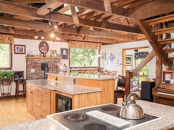 Stunning custom-built home with soaring ceilings, massive windows with a view from every room. Beautiful, newer kitchen with granite counters, breakfast bar, hickory cabinets and cozy gas fireplace add to the entertaining ambiance. Step down to the over-sized family room which is drenched in sunlight! The fireplace here is the perfect touch for cold winter nights. Open staircase to catwalk, master suite and office which opens to balcony where you can sit and watch the sun rise over the Sunkist Hills of Colden. Peace and quiet with privacy! Newer metal roof and gutters (2018). Large patio and deck enhance the outdoor entertaining options. Additional 2.5 car garage with separate driveway. This truly is a special home in a fabulous location.