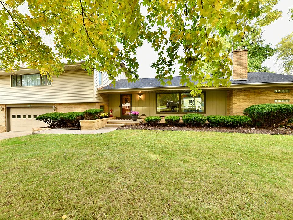 Gracious and spacious Forest Hills home with stunning vaulted ceilings sits on park-like .51 acre golf course lot. The great room has high beamed ceilings and the prettiest limestone stacked fireplace. The view out the front picture window is stunning. The well-appointed kitchen is convenient to the dining and breakfast areas and features a handsome backsplash contrasting nicely with the white cabinets. All appliances stay. The dining area also has a large picture window and high ceilings for drama and light. On the main level, you'll find a convenient home office.  As family rooms go this one is a real show-stopper.  It's large and bright with two walls of windows making the most of the golf course view. The primary bedroom has a sitting area and an ensuite bath. The other three bedrooms are ample with nice closets. Did I mention the nice basement which makes a great storage area or flex space? This house even has a dedicated golf cart garage. 2 car garage has lots of storage and the separate golf cart garage loads from the rear of thehome, it's currently being used as a workshop. You will enjoy this outstanding setting overlooking golf course, woods and near Big Duck Creek in one of Elwood's prettiest neighborhoods.