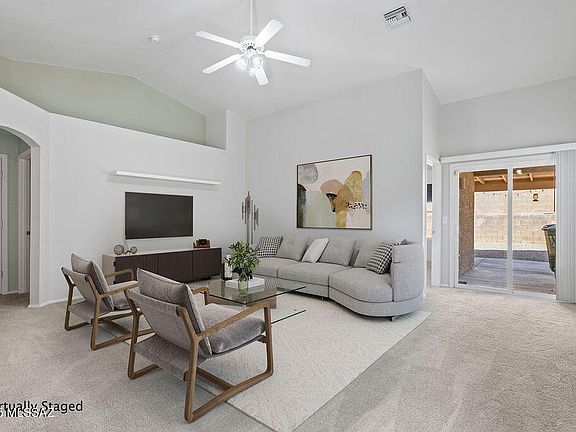 Beautifully well maintained 3 Bedroom 2 Bath home in the Award Winning Vail School District and Priced to Sell! Vaulted Ceilings throughout. Open floor plan with Living room, dining room and spacious kitchen with large pantry closet, breakfast bar, nook with bay window and the built-in desk. Split bedroom plan for primary bedroom extra privacy! Primary bedroom features walk-in closet and ensuite featuring dual sink vanity, soaking tub, and walk-in shower. Relax on the extended rear covered patio and low care landscaping with huge shade tree. Nearby is the Purple Heart Park offering Community Events, Playgrounds, Public Pool, Ball Fields, Volley Ball Courts, Skateboard Park, Dog Park and More!