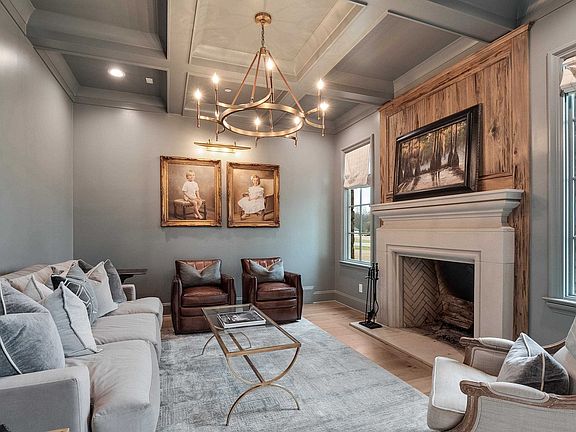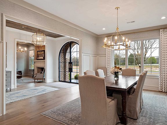 The Nottingham from the 2021 Vesta Home Show, blt by John Duke, w/intr design by Kim Loudenbeck of Warehouse 67. English Manor style with a modern floor plan. So many to-die-for features incl 7 1/2" hardwoods up/dn, exquisite lighting thruout, cook's kitchen w/48" 6-burner, dbl oven range and full size frig & frzr, beamed vlted ceil family rm w/FP o'lking bluestone floored porch w/FP, glass-encased wine room, & vlted ceil MBR w/spa bath. Even a pet watering station & shower. Plus a gunite pool.