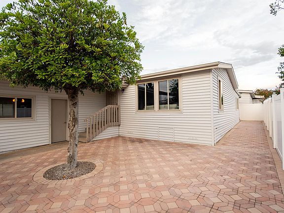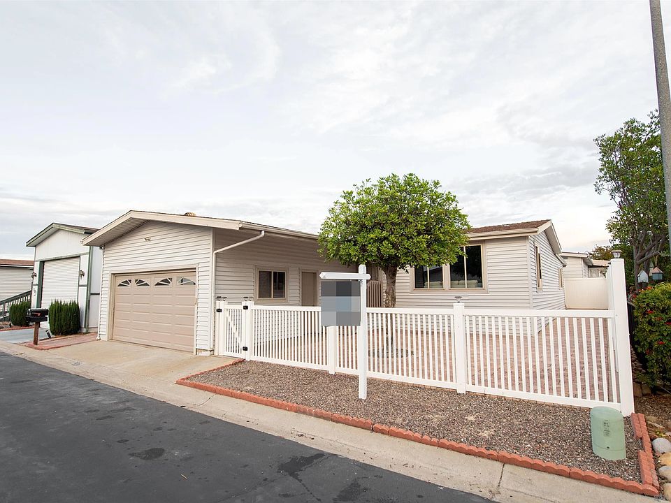 Great home in one of San Diego's premier parks. The home is completely enclosed with a 6' vinyl fence. The yard has had pavers professionally installed all around the house. The roof, water heater, Hvac system are all newer. Inside, the sunroom was converted into a living area that has drywall and recessed lighting. Dual pane windows throughout the house, over-sized master bedroom and walk in closet, The two car garage has custom cabinetry that opens up to the laundry room that has more storage spaces. Its a great home located in a 55+ community that features lush landscaping with mature trees, large grassy areas, a lovely clubhouse, Stand up shuffle board, library, 2 swimming pools, tennis / pickle ball courts, putting greens, clubs, classes, and groups for active people.