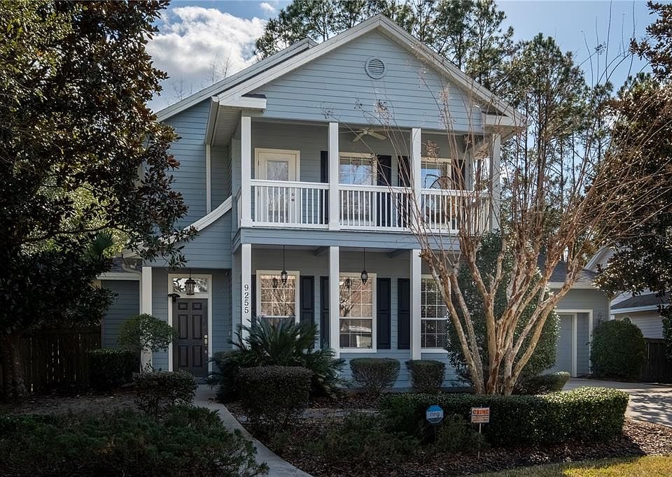 Former Clayton Parade home featuring 4BR/3.5 BA plus den/5th bedroom and a sun room. This great home features an inviting foyer, open floorplan, tile floors in main living areas, great room with built-in entertainment center and home audio. Additional features include a separate dining area, kitchen with stainless appliances, granite countertops, island with bartop seating and a desk area off the inviting sunroom with double sided fireplace to the owner's suite. Retire to the downstairs owner's suite with engineered hardwood floors, fireplace, ensuite with walk-in closet, separate shower, spa tub, double vanities and water closet. The downstairs half bath is perfect for visitors. Upstairs you will find wood looking tile floors, three generous size bedrooms, one with a balcony and built-in desk area sharing a full bath with the den/5th bedroom. Two more bedrooms share a full bath. Extend your living and entertainment outside onto the patio and fenced backyard. All of this is just a short distance to the Haile Market Square Publix shopping area, Haile Village Center and Saturday market, sidewalks, paths, playground/park, UF, UF Health/Shands, HCA Florida, Celebration Point, Tioga Town Center and more!