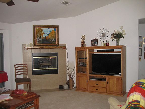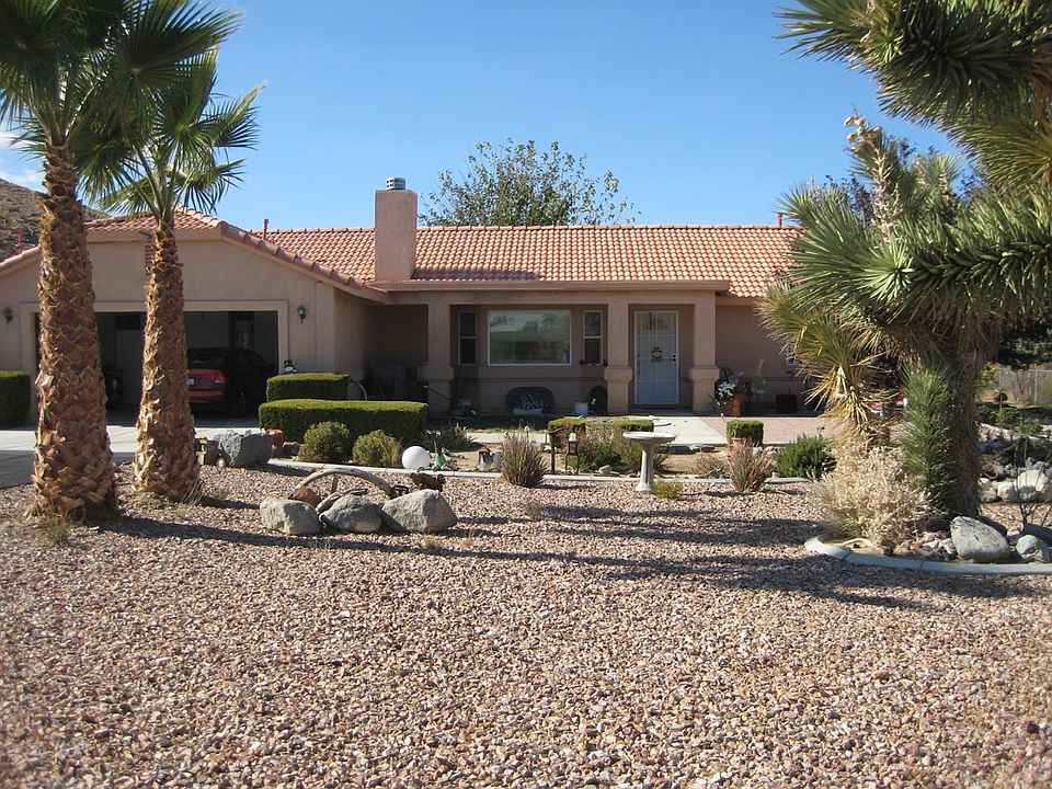 This is a lovely home which has been well taken care of. 3 bdrm, 1 full bath + master bath with large tile shower, granite counter tops in kitch. & baths,ceiling fans throughout,separate laundry room, central heat & air cond, gas log frpl, tile roof, chain link fenced, plus wooden privacy fence for lovely lawn covered rear yard with covered patio, nicely landscaped and decorated front yard. 1 share Lucerne Valley Mutual Water stock, nat. gas, paved street close to town.