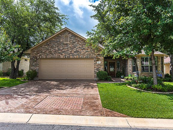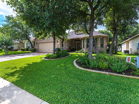 Call Seth Koppel Broker 512.750.8495. Popular "Austin" floor plan with 2 BR plus office, breakfast and formal dining and amazing curb appeal. Elegant foyer entrance with graceful archways. Welcoming and huge, open kitchen w/granite, large island with seating and lots of cabinets. Beautiful design elements throughout including tray ceilings, crown molding, hardwood and tile floors. Don't miss the tranquility you'll feel surrounded by the lush landscape from the private, screened in flagstone back patio with ceiling fan!