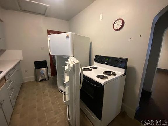 Single family home with 2 bedrooms, full bath, living room, dining room, kitchen with range, fridge and dishwasher. Carport in rear.