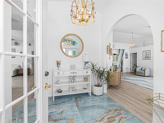 Stunning and tastefully updated home seated on an oversized lot located in the desirable deed restricted community of Rotonda West. Recently updated with a shingle roof (2022), A/C (2021), laminate flooring installed (2021), porcelain tile in the foyer (2023), all new custom light fixtures and fans (2021), the primary bathroom was completely renovated in 2023, guest bath was fully upgraded as well, and the interior and exterior of the home were painted in 2023 and 2024. This immaculate home features tasteful landscaping, elegant arched windows and front entry leading you to the double doors. Upon entering, a myriad of elegant architectural features including vaulted ceilings, skylights, rounded corners, impeccable decor and neutral color scheme awaits. You will find everything you could ever want in a home and more! This spacious floor plan is desirable for every occasion featuring a formal living room and family room, a large eat-in kitchen with ample cabinetry and countertop space, multi-colored blue backsplash, quality stainless steel appliances and breakfast bar--all open to the family room where you can relax and gather with friends and family. You can easily expand your living space outdoors with your triple pocketing sliding glass doors in the living room to your private Florida oasis! Enjoy both the sun and shade with a large 34' x 10' covered lanai, and cool off in your very own pool with upgraded pebbleTec interior finish, and brick paver pool deck ... and if that's not enough there is an additional patio in the backyard and a custom built outdoor shower all surrounded by luscious landscaping and a tranquil water view--truly a backyard oasis! There is plenty of room inside with the "split" bedroom layout--the primary suite is separate with a spacious bedroom with two roomy walk-in closets, french doors that lead to the lanai, the same easy to maintain laminate flooring & a stunning ensuite bathroom with dual vessel sinks, split vanities with granite counters, porcelain wide plank tile, an accent wall highlighting the soaking tub, and designer light fixture, a roman shower with tasteful tiled walls and floor. On the opposite end of the home, there are 3 bedrooms and the guest bathroom--all three bedrooms are tastefully decorated and have laminate flooring, sizable closets, and all are conveniently located just steps away from the guest bathroom that provides direct access to the pool and has also been upgraded with a new vanity, mirror, lighting, upgraded tile in the shower/tub, and sand-colored porcelain tile. Lets not forget the laundry room with cabinets and a wash sink, plus a two car garage...all you could ever want plus more! Don’t wait, come live the Florida dream! Enjoy the five golf courses Rotonda West offers along with walking trails, pickleball courts and freshwater canals for kayaking all just minutes away. Conveniently located near shopping, restaurants, beaches, fishing, local farmers markets and so much more. Make this home your dream come true.