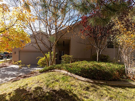 What an opportunity to live downtown in a beautiful home with an amazing view. This home boasts a large family room, kitchen and dining room that is great for entertaining, hosting families and space for all your hobbies. As you enter the home you are welcomed to high ceilings, a large coat closet with storage behind, a half bath and a hobby or exercise room off the entry with direct access to the oversized two car garage. There are a few wood stairs from the entryway that take you up to the family room, large office or 3rd bedroom and kitchen area. This is a wonderful space that allows for you to stretch out and enjoy the fantastic views of the Jemez mountains. The chefs kitchen has ample counter space, tons of cabinets, room for a breakfast table and a large walk in pantry. The dining area sits off the open kitchen and looks into the family room. There is direct access onto the deck that embraces the views with composite decking and a staircase that takes you down to the private patio. The two ensuite large bedrooms are situated in a private area down a few short stairs from the entryway. The bedrooms are large with walkin closets that allows for plenty of room for storage and all your belongings. The luxury spa like ensuite bathrooms have beautiful lighting and plenty of room. The owners suite has a separate soaking tub plus a walk in shower. There is access to the private patio with flagstone patio and room for outdoor furniture and flowering pots. Its a beautiful peaceful space. The large laundry room is directly down from the bedrooms making laundry a breeze with the bedrooms close by. This home has a perfect blend of features that meet many needs. The location is ideal with the library, indoor aquatic center, coffee shops, restaurants. and the local farmers market with summer concerts close by make this location one to be called home.
