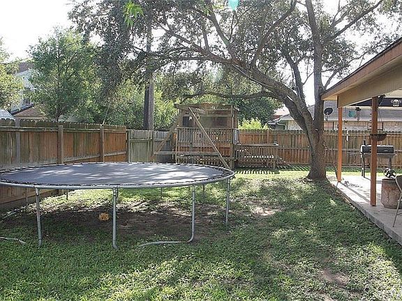 Walking up to this nice home you will feel the impact of the large porch and the nice yard. You'll appreciate this 4-bedroom, 2 1/2 bath home. Through the very attractive glassed front door to a nice foyer leading into the living area. This home has a nicely laid out kitchen with plenty of cabinet space. Large laundry room with cabinets and counter. Front entry 2 car garage with storage. Nice glassed doors opening to a beautiful large patio where you can relax, entertain and enjoy the game! Enjoy the privacy fenced yard with a great large play station for the children. Perfect for a family, this home is ideally positioned close to restaurants, church, shopping centers, schools and all city amenities. Roof shingles have recently been replaced. According to the seller this home did not flood!