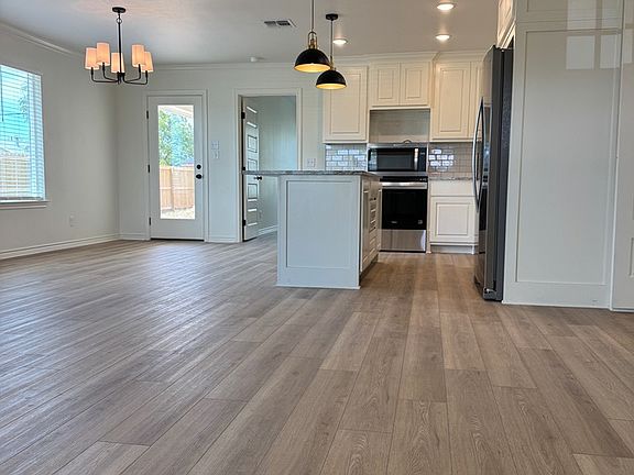 New Construction 4 bed 2 bath construction by JWB Homes featuring luxury vinyl plank flooring, custom cabinets, crown molding, all stainless appliances including refrigerator, stained cedar fence/galvanized posts on sides and rear, landscaped front yard, foam insulation in walls and fiberglass in attic, energy efficient HVAC unit, 2" blinds, 1-2-10 Warranty (1-Year Workmanship & Materials 2-Year Mechanical HVAC, Plumbing Electrical 10-Year Structural) Lot is oversized at 75 x 156 so lots of opportunities for storage and space. $5,000 Builder Incentive for closing or other related costs and additional down payment assistance options are available with preferred lender. *This street/block was NOT impacted by July 2025 flooding*. All measurements are approximate.