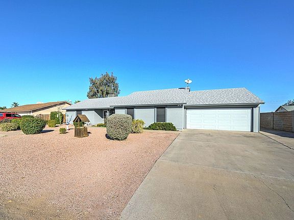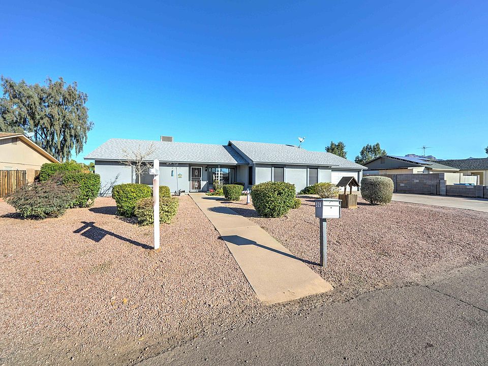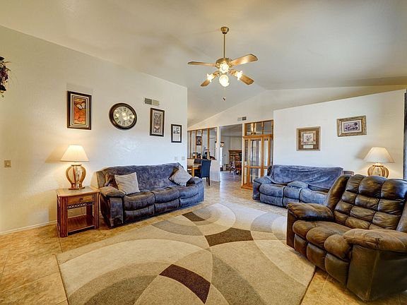 This home has so much to offer. Your clients will enjoy this nice open floor plan perfect for those large family gatherings. The home has twenty inch tile in all the right places & new carpet in the bedrooms. This home has vaulted ceilings, split floor plan w/large bedrooms. The kitchen looks great w/ upgraded countertops & stainless steel appliances. The outside has been painted & looks incredible. In additon the important upgrades of roof & AC have already been done. This backyard is AMAZING w/full length covered patio, RV gate a & HUGE yard with block fencing for all of your toys. There is so much room for the kids to roam on this lot that is close to a 1/2 acre. The neighborhood is very peaceful & has mountain views. All of this and NO HOA. Come by & see this home today!