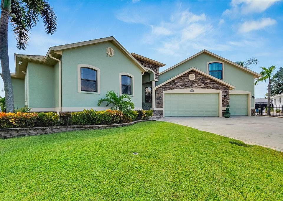 APOLLO BEACH LUXURY WATERFRONT – UPDATED CUSTOM-BUILT EXECUTIVE POOL HOME - NO CDD OR HOA FEES: Vacation all year round and embark on a lifestyle filled with luxurious relaxation and endless waterfront fun in this exquisite updated, custom-built executive pool home nestled in the desirable Golf & Sea Village community. This magnificent property is perfectly placed on an oversized cul-de-sac lot, flaunting a breathtaking 170 ft. of canal frontage offering panoramic views of where the Masters Canal meets the Golf and Sea Waterway. Your aquatic adventures begin at your doorstep with a 12' x 24' private dock equipped with a 10,000 lb. boat lift, ready to whisk you away into the Tampa Bay sunset. This stunning 2,929 sq. ft. residence is a testament to sophisticated living, showcasing a seamless blend of modern design and functionality across 4 bedrooms, 4 baths, and a spacious 3-car garage with a large workshop area - all designed with family fun, entertainment, and comfort in mind. As you step through the elegant leaded glass entry doors, the foyer welcomes you with soaring ceilings and cascades of natural light, guiding you through an open-concept, split floor plan design that radiates warmth and inviting elegance. The heart of this home is undoubtedly the chef’s dream kitchen, recently remodeled to perfection. Here, high-end stainless-steel appliances, a 36-in. gas cooktop, and a built-in oven merge with luxurious finishes like gray 42-in. solid wood slow-close cabinets, gleaming quartz countertops, pass-through window, breakfast seating, closet pantry, and stylish subway tile backsplash. The kitchen’s open layout flows effortlessly into the dining area and a sunken great room, creating an ideal setting for gatherings. The great room, with its striking custom stack stone wall, custom cabinetry, and cozy 54 in. electric fireplace, offers a captivating space for relaxation and enjoyment. Retire to the sumptuous master retreat, a spacious haven that will easily accommodate a king-size bedroom set, and features a private slider to the pool area, a large walk-in closet, and an en-suite bathroom with a Roman shower with multiple shower heads, a garden tub, granite counters, double vanity, and a private water closet. Three additional bedrooms provide ample space for family and guests, with the versatility to adapt to your lifestyle needs. Bedrooms #2 and #3 are separated by a Jack and Jill bathroom that maximizes space while maintaining privacy. Bedroom #4 (upstairs loft/bonus room) is currently used as a billiards room. It can also be used as a multigenerational living space or in-law suite as a benefit of having its own en-suite. The dedicated home office features French doors, perfect for a homeschooler or work-from-home professional. Outside, the true essence of Florida living unfolds in your private outdoor oasis. A screened enclosure encompasses a 12’x24’ heated, saltwater sports pool and a custom-built outdoor kitchen and bar with stack stone finishings and granite countertops, creating the perfect backdrop for memorable entertainment under the sun or stars. Equipped with an OWNED 10-KILOWATT SOLAR ELECTRIC SYSTEM, a new hybrid water heater, and a pool heater, this home marries luxury with sustainability. Located with convenient access to everything Tampa Bay has to offer, this breathtaking property invites you to indulge in the ultimate boating lifestyle and make your waterfront dreams a vivid reality.