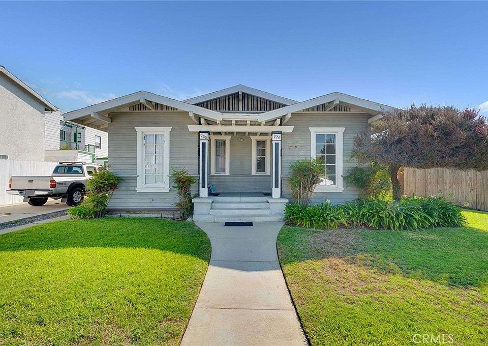 One side of a Craftsman style duplex. Quiet community east of Redondo. Shares one common wall with 928 Newport and offers 3 bedrooms and one bath. One bedroom would be considered "junior sized" but does have a closet. Ceiling fans T/O. Freshly painted inside, new carpet plus new vinyl plank flooring in the kitchen and bath. Washer and dryer hookups off the kitchen, free standing stove, dishwasher and refrigerator included. Tiled counters, dining area good storage. Shared front and rear yards. Good natural light throughout with windows on three sides. Close to freeways and Long Beach Transit as well as Belmont Shore and the retro sections in Alamitos Beach. Owner pays for water and lawn service. The property is ready for immediate occupancy.