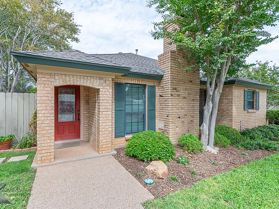 RARE FIND! This well-maintained patio home offers 2 bedrooms, 2 full baths, and exceptional features that make it truly move-in ready. Located in an established neighborhood, this home has been lovingly cared for and is in pristine condition. Step inside to find freshly painted cabinetry and a bright kitchen equipped with all major appliances, easy-care Corian countertops, and ample storage. The inviting living room features custom-built-ins and a cozy gas-log fireplace. Enjoy the convenience of a separate utility room (washer and dryer can stay or go) and a 2-car rear entry garage with extra concrete turn space. Additional highlights include pleasing neutral paint, NO popcorn ceilings, in-ground sprinkler system, gutters, and a private yard oasis with two patios and a privacy fence. Per owner, windows replaced 2010, roof replaced 2015, HVAC system replaced 2021, microwave replaced 2024, painted cabinetry 2025. With a gorgeous, landscaped yard and an abundance of trees, thoughtful updates, and low-maintenance finishes, this home checks all the boxes.