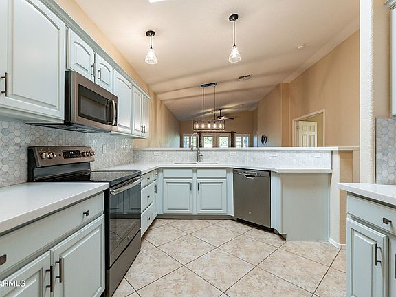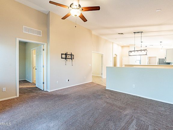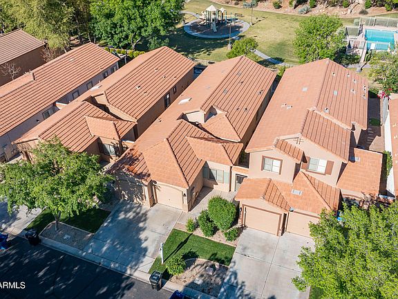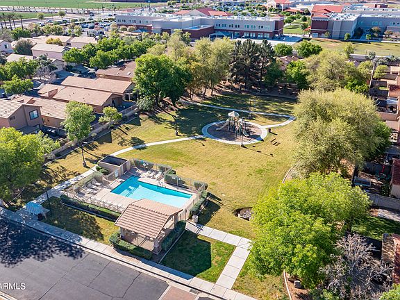Experience effortless living with HOA-maintained front yard in this stunning 2 bed, 2 bath PLUS den home. The upgraded kitchen boasts a breakfast bar and charming dining area, connecting to a spacious family room. Enjoy natural light and added style with plantation shutters and ceiling fans throughout. The second bedroom is generously sized, perfect for guests or a home office. Step out to the tranquil backyard oasis with a view fence, mature landscaping, and a prime location backing to a large greenbelt. Indulge in the community's luxurious amenities including a sparkling pool, children's playground, and scenic walking paths. With easy access to the 202 and nearby shopping and dining, this home offers the perfect blend of comfort and convenience. Don't wait, make this move-in ready property yours today!