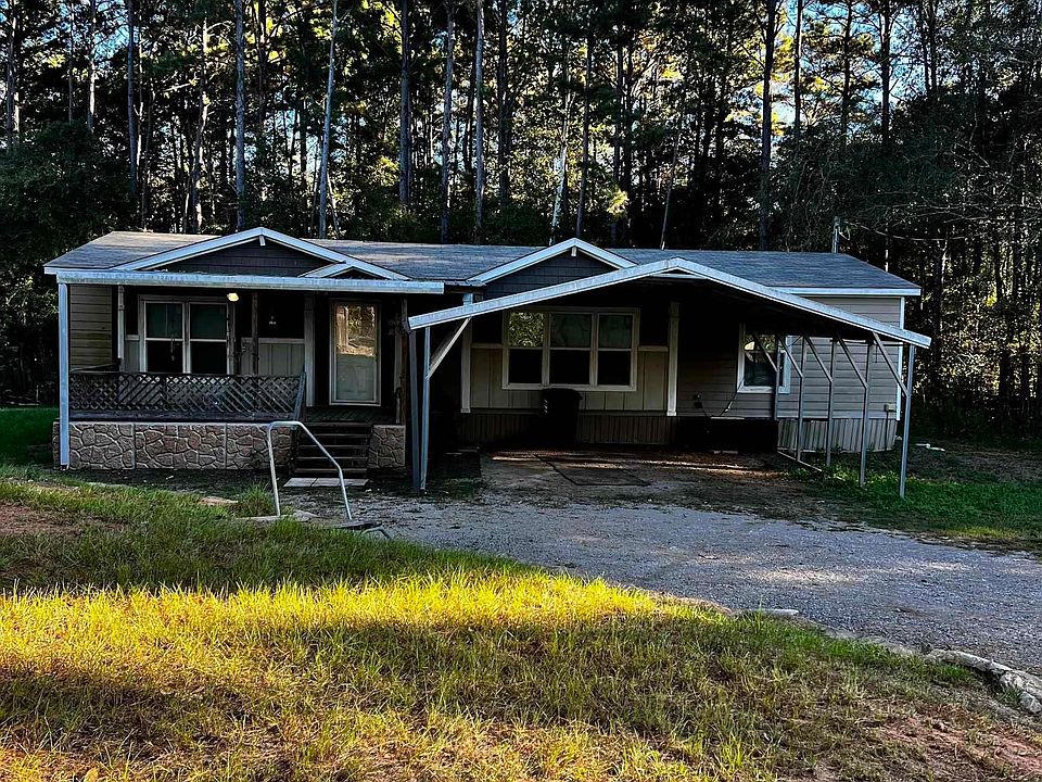If you are looking for two single family homes with small acreage, this is the property to come see. Located on five private acres, the main home is a 2017 manufactured modular home with approximately 1624 square feet with 3 bedrooms, 2 bathrooms. The family room offers a built-in cabinetry for storage and a ledge for your big screen tv. The kitchen has a granite counter on the island/breakfast bar, a range, dishwasher, fridge, pantry, under cabinet lighting, space for your table and access to the back deck area. The utility room offers more storage and a folding area. The primary bedroom is split for privacy. There is a large walk- in shower, a Kohler Hydrotherapy Walk-In Tub, a vanity with double sinks in the primary bathroom. The other two bedrooms have a hall/guest bathroom. The second home is a 1997 mobile home with three bedrooms and two baths and approximately 1736 square feet. The family room is spacious with a wood burning fireplace to enjoy. There is a formal dining area off the family room. The kitchen features an island and plenty of cabinets and counter space. There is even a breakfast area with a sliding glass door to the back deck area. The primary bedroom and bath are split from the secondary bedroom and guest bath. Between the two homes is a small building with approximately 625 square feet. This building only has electricity and just two separate rooms that were a man cave and a workout room. There is a small wooden barn which is approx. 810sf. There is a detached metal carport for boat/extra vehicle storage. There is a larger metal storage building. There is a small Masonite storage building and a small plastic storage building. Don't delay, call to make an appointment to see this property today.