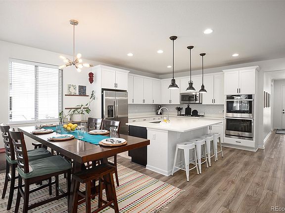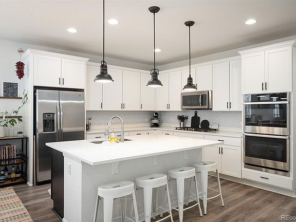 This is your chance to make Colliers Hill, Erie, home sweet home! This exquisite Richmond Arlington model boasts a main floor living plan with three bright bedrooms and laundry, adjoining the open concept kitchen and living room area. Head downstairs to the basement where you'll find a huge rec room, kitchenette and two more generously sized rooms. There's no lack of space in this gorgeous home! The fully landscaped, minimal maintenance yard and extended patio are already in place for you to enjoy this summer! Solar panels keep utility costs low. Ready to cool off during the hot Colorado summers? Take a splash in the Colliers Hill community swimming pool just down the road, with an even closer brand new pool and amenity center slated to open this summer! Less than a mile to Erie High and Soaring Heights PK-8 schools. Enjoy many quaint, local restaurants and shops in downtown Erie, a quick 5 minute drive away. Why wait 6 to 9 months to buy new when you can have this beautiful home with none of the new home start up costs?! New roof recently installed.