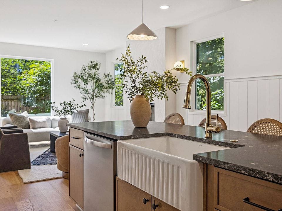 Cozy fireplaceHome officePrivate patioSpacious denWell-appointed kitchenNatural lightDetailed millwork