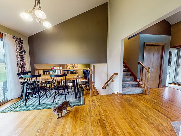 This spacious 4 Bedroom Quad-Level home has everything you need in a convenient location just minutes from 394. Great for Entertaining - The Oversized 3 Car Garage features a Dry Bar, Cable Hookup, & Cabinetry, plus plenty of storage space. Garage Refrigerator is included in the sale, as well as all of the Stainless Steel Kitchen Appliances, Washer, and Dryer. The Covered Front Porch is perfectly inviting, and the front Living Room gets tons of light from the Large Picture Window & Skylights. The Kitchen has plenty of cabinetry, countertops, & a pantry for the avid cook. The Primary Bedroom, upstairs, has double wall closets & bathroom with Walk In Shower. The Upper level also has 2 more Bedrooms, linen closet, & Full Bathroom. The open Kitchen and Dining space lead to the large Lower Level Rec Room with Gas Fireplace. Lower Level also features a Bath with Walk In Shower, Laundry Room, and 4th Bedroom. Easily access the concrete patio from the garage or the double slider on the main level. The basement can easily be set up for more activities & storage. New carpeting has been installed throughout the Living Room and Bedrooms.