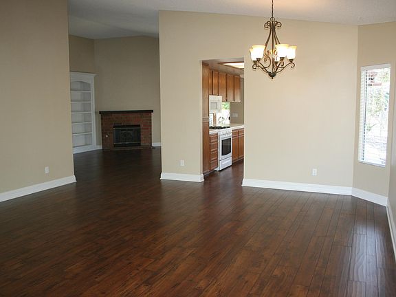 This great 1905 sq ft home is located in one of Santee's most sought after neighborhoods. Located on a quiet cul-de-sac, this lovely 4 bed/2 bath home boasts new wood laminate flooring, fresh paint, near new appliances, updated bathrooms, and a sizable master suite. The gas log fireplace and lovely built in shelf unit in the family room make for a very comfortable home. Single story with 3 car garage on over 1/2 acre of canyon view property provide panoramic views of the hillsides from the nook and covered patio.