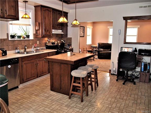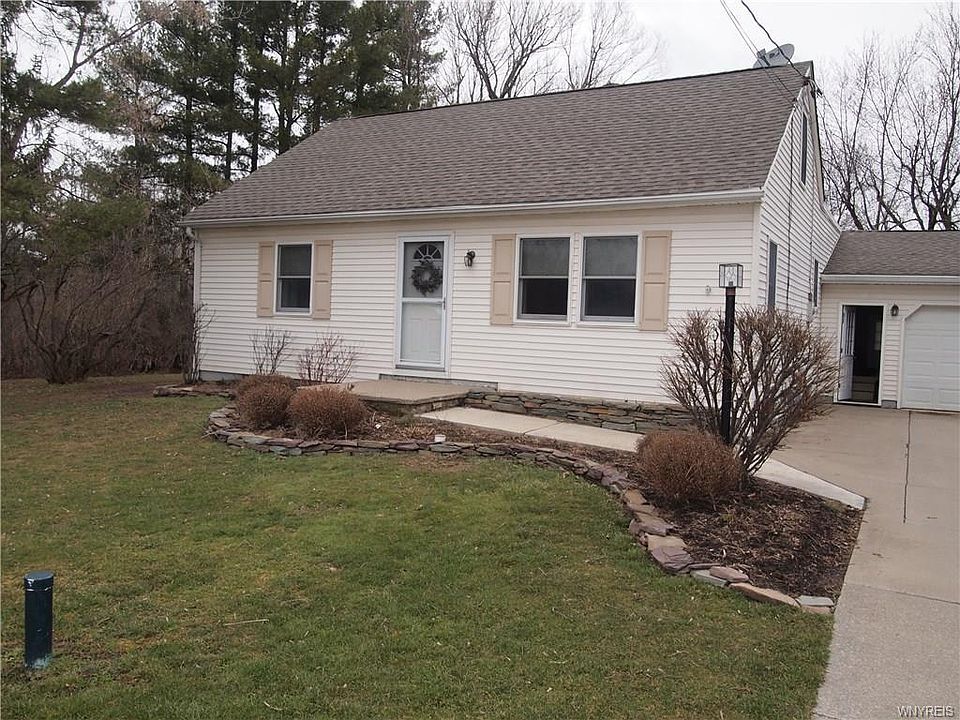 Clarence Schools, Low Taxes, Almost an ACRE!! You have to see this cute Cape!! Also Hockey Families, the owner built an ice hockey rink that all parts are marked for simple assembly/disassembly--it can be left or not. Four bedrooms, 1.5 baths, large kitchen with an island and breakfast bar!! There is a morning room -- space for a large table and chairs, sliding glass doors opening to the large deck---no rear neighbors, just a beautiful view! The two plus attached garage is a bonus along with the double wide concrete drive with turn around, there is another driveway on the West side of the property. 30 year roof--complete tear off in 2007, most windows replaced, mechanics are in excellent condition. It is an adorable home with great future potential! Showings start Wed Apr 5.