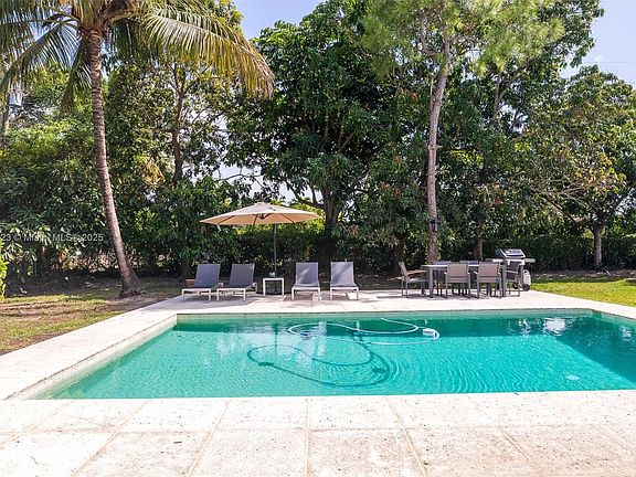 Luxury Meets Mid-Century Modern in Palmetto Bay This stunning 3-bedroom, 2-bath pool home sits on nearly a 1/3-acre lot, blending timeless style with modern luxury. Classic Terrazzo floors flow throughout, complemented by a sleek marble kitchen and spa-like marble baths featuring a whirlpool tub. High-end upgrades include a wine cooler, Yamaha indoor/outdoor sound system, Bose outdoor speakers, LG outdoor TV, and Samsung TVs throughout the home. Smart features abound with LED lighting, USB-C outlets impact windows and doors, and a Honeywell smart thermostat. Step outside to your private oasis—lounge by the pool, relax under the patio umbrella, and enjoy the lush tropical landscaping with mature fruit trees and ample space for boat or RV parking Hurry will not last Make your appointment now